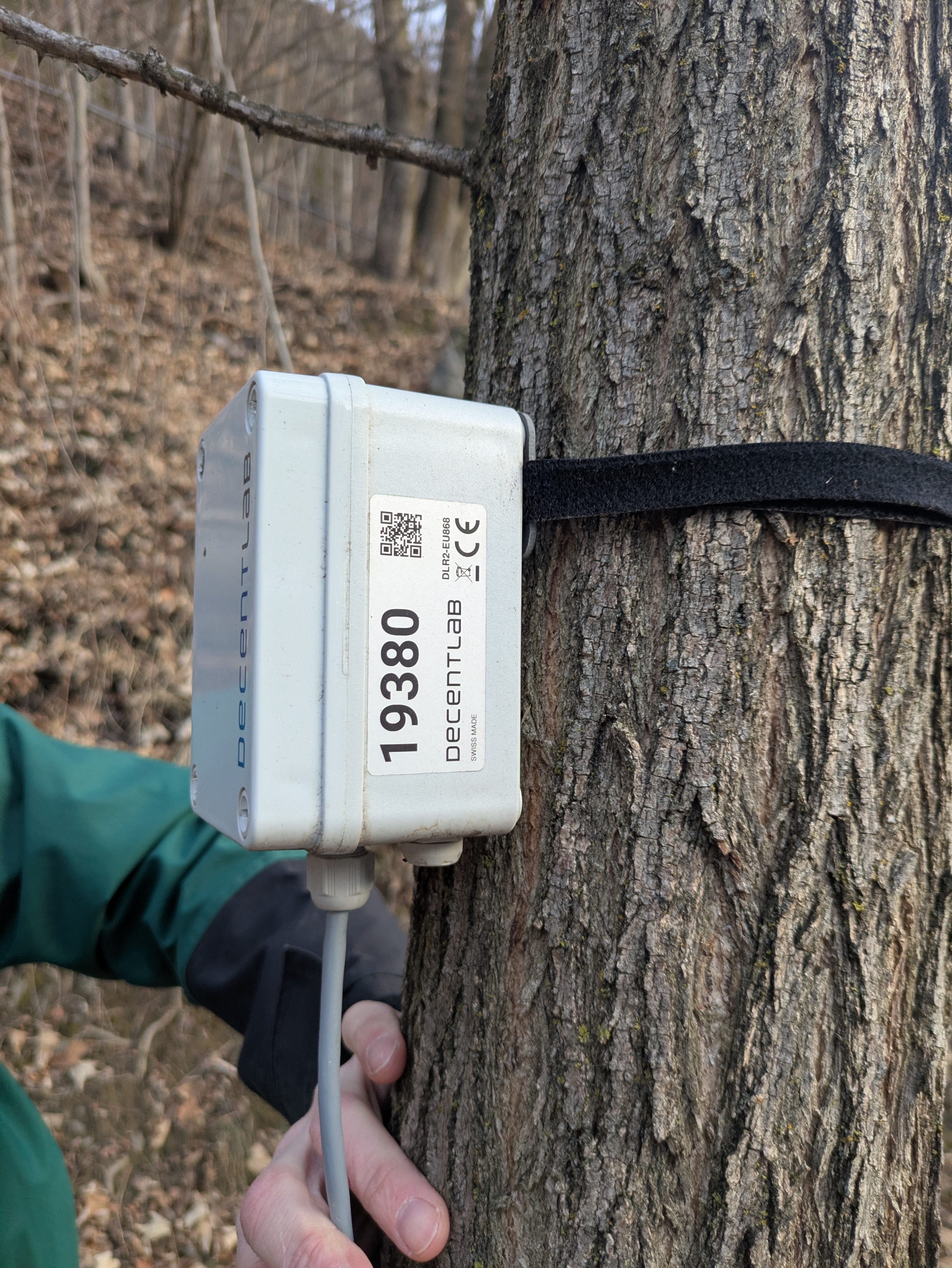 - Es wurde ein neuer Dendrometer installiert für eine andere Buche, sie ist 20 cm östlich von 19375, war quasi ein Doppelstämmer. Der neue Node trägt die Nummer 19427 (RD 1mm, Höhe 13 m, BHD 25 cm)
